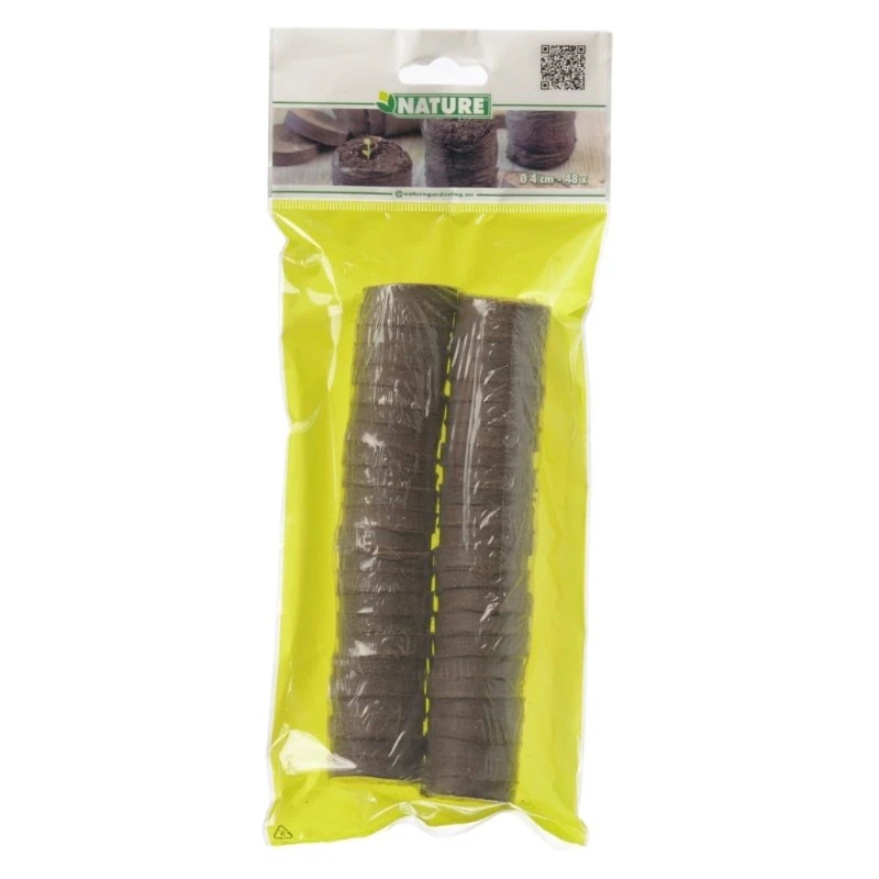 Deze Nature turftabletten hebben een doorsnede van 4 cm en zijn per stuk verpakt in een biologisch afbreekbaar netje. Drenk een tablet in water en laat deze opzwellen, binnen enkele minuten vormt het zich tot een kluitje en kan een zaadje of stek geplaatst worden. De turftabletten zijn per 48 stuks verpakt.